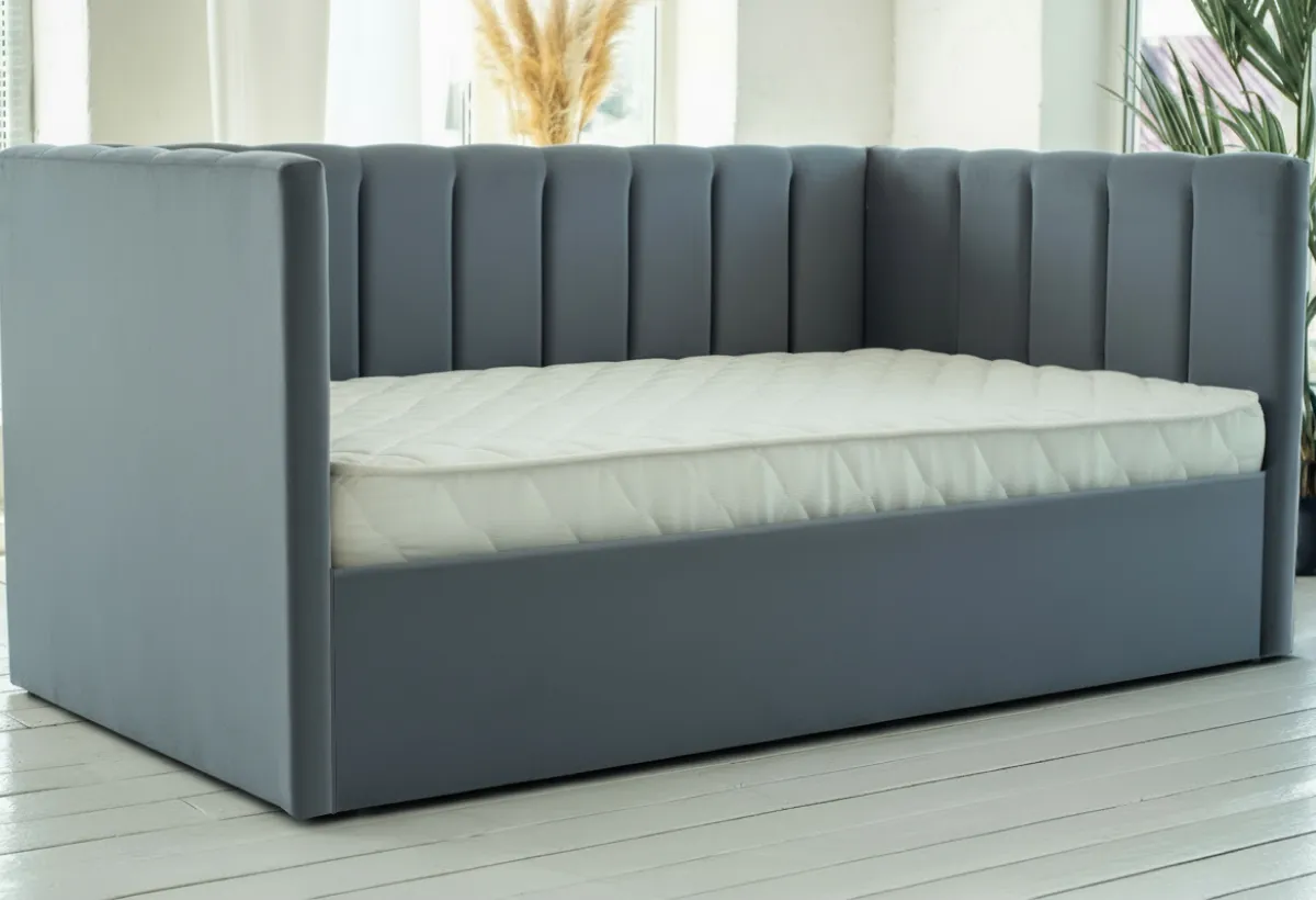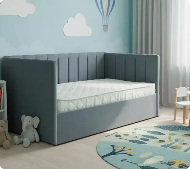 Спальное место: 90×200 см — оптимальный размер, подходящий как для детей, так и для подростков. Подъемный механизм: В комплекте идёт удобный механизм, который позволяет легко приподнимать спальное место, открывая доступ к просторному отсеку для хранения. Там можно разместить постельное бельё, одеяла, подушки или любимые игрушки, что поможет поддерживать порядок в комнате. Материал обивки: Возможность выбора ткани — Рогожка или Велюр. Оба варианта отличаются практичностью, износостойкостью и приятной текстурой. Универсальный дизайн: Кровать подойдёт как для мальчиков, так и для девочек, а широкий выбор цветов обивки позволит подобрать идеальный оттенок под любой стиль и предпочтения ребёнка.